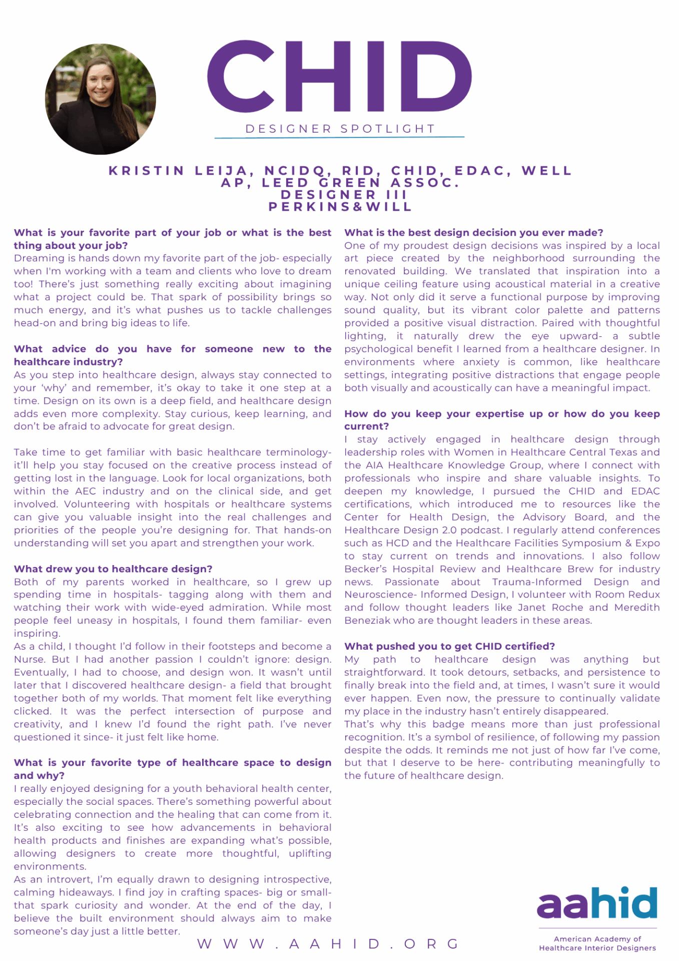 Read More About This Month's CHID Spotlight: Kristin Leija