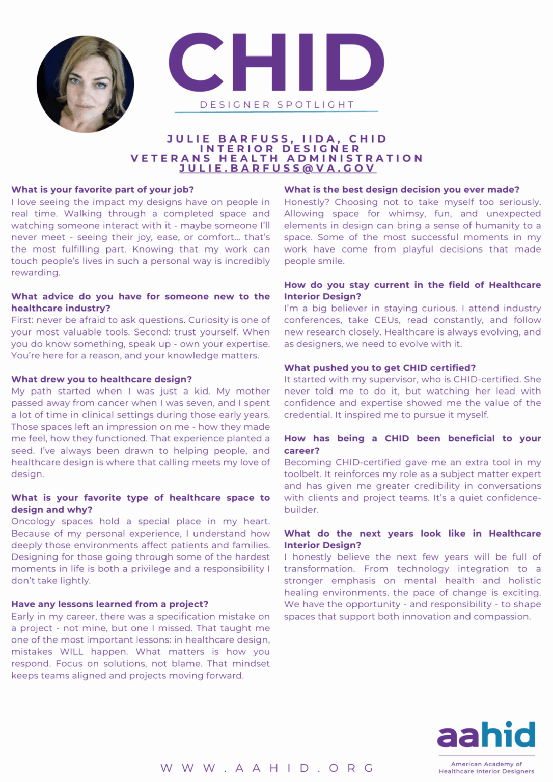 Read More About This Month's CHID Spotlight: Julie Barfuss